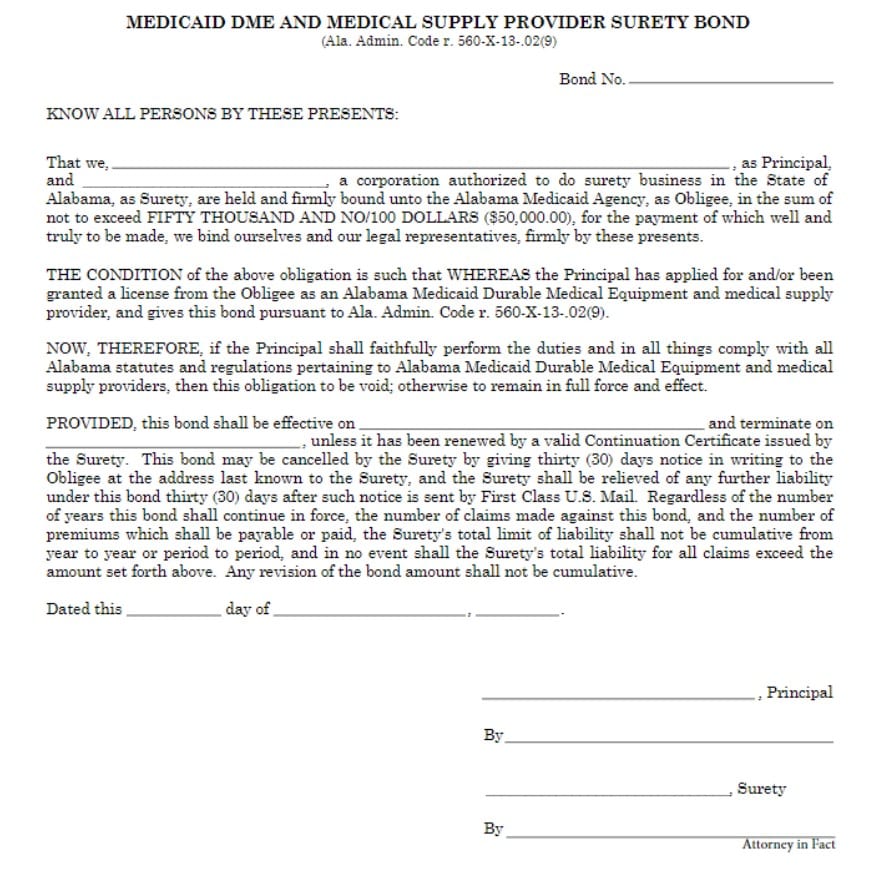 Alabama Medicaid DME and Medical Supply Provider Bond: A Comprehensive Guide