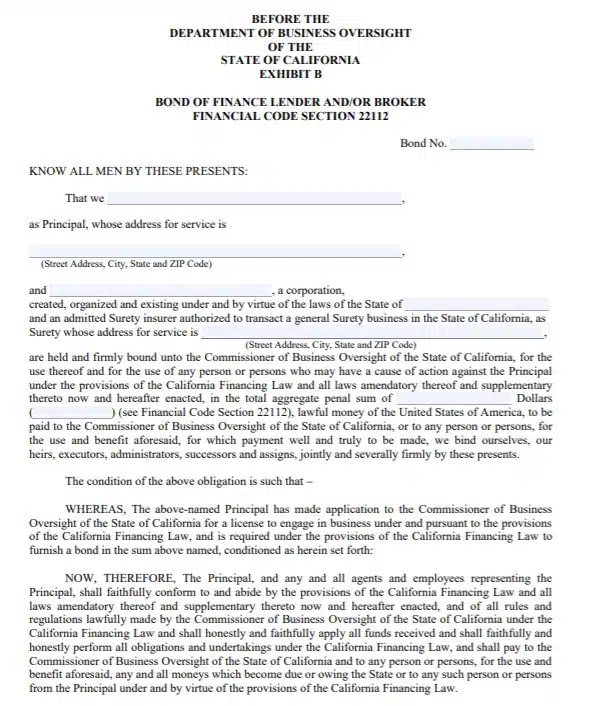 How Do California Residential Finance Lenders/Brokers File Their Bond?