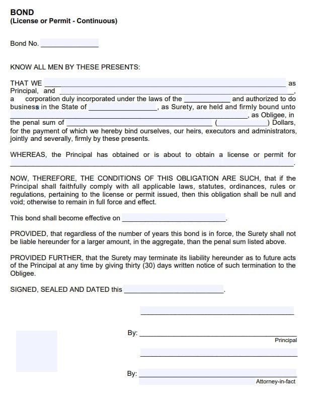 The surety bond requires signatures from both the surety company that issues the bond and from the merchant. The surety company should include the following information on the bond form: