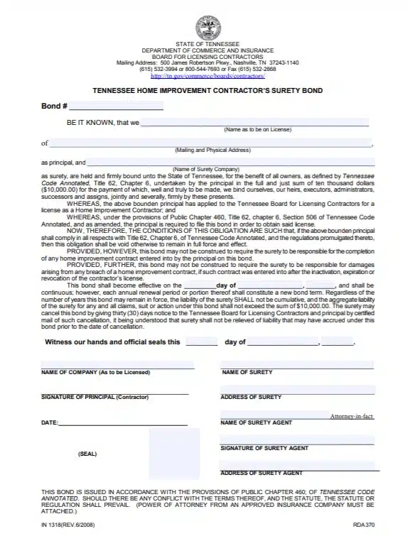 Tennessee Home Improvement Contractor Bond: A Comprehensive Guide